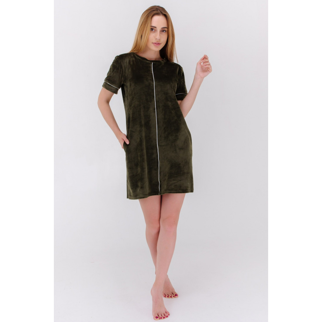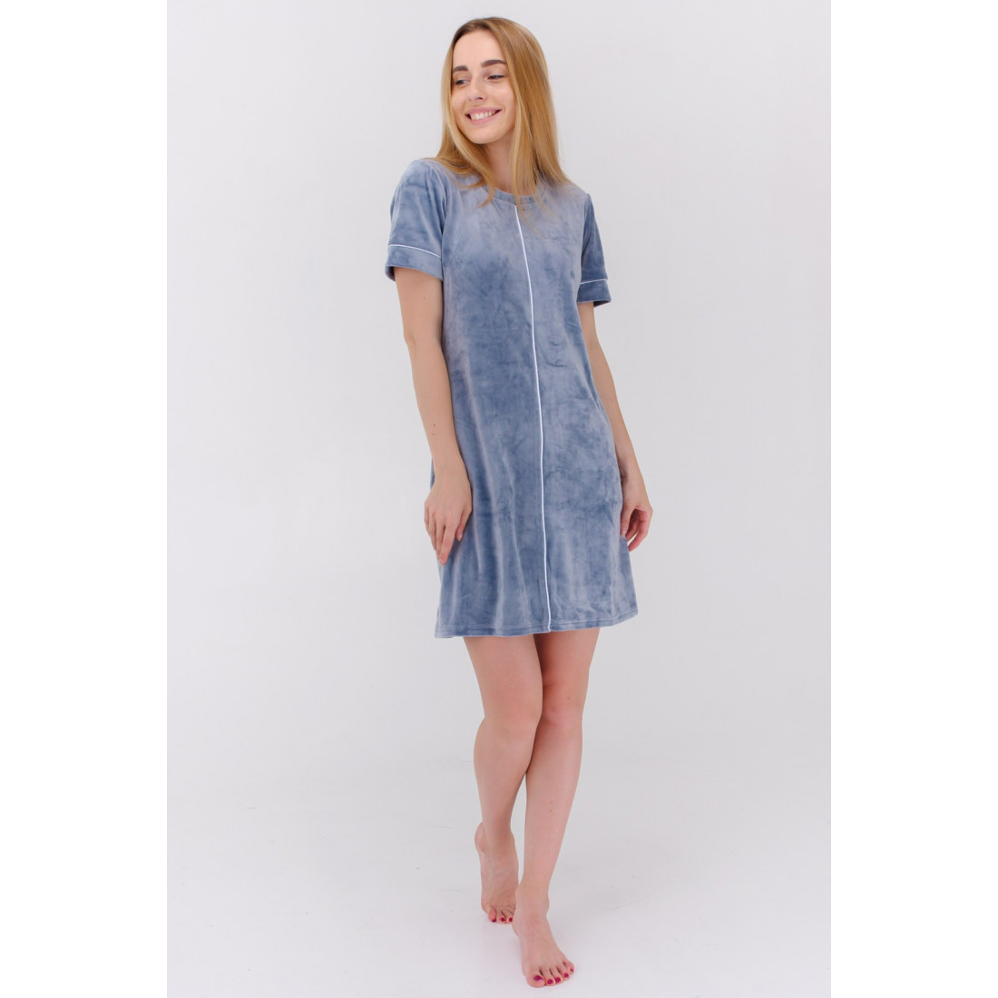 Жіноча нічна сорочка коротка з плюшевого велюру, короткі рукави із манжетиком.