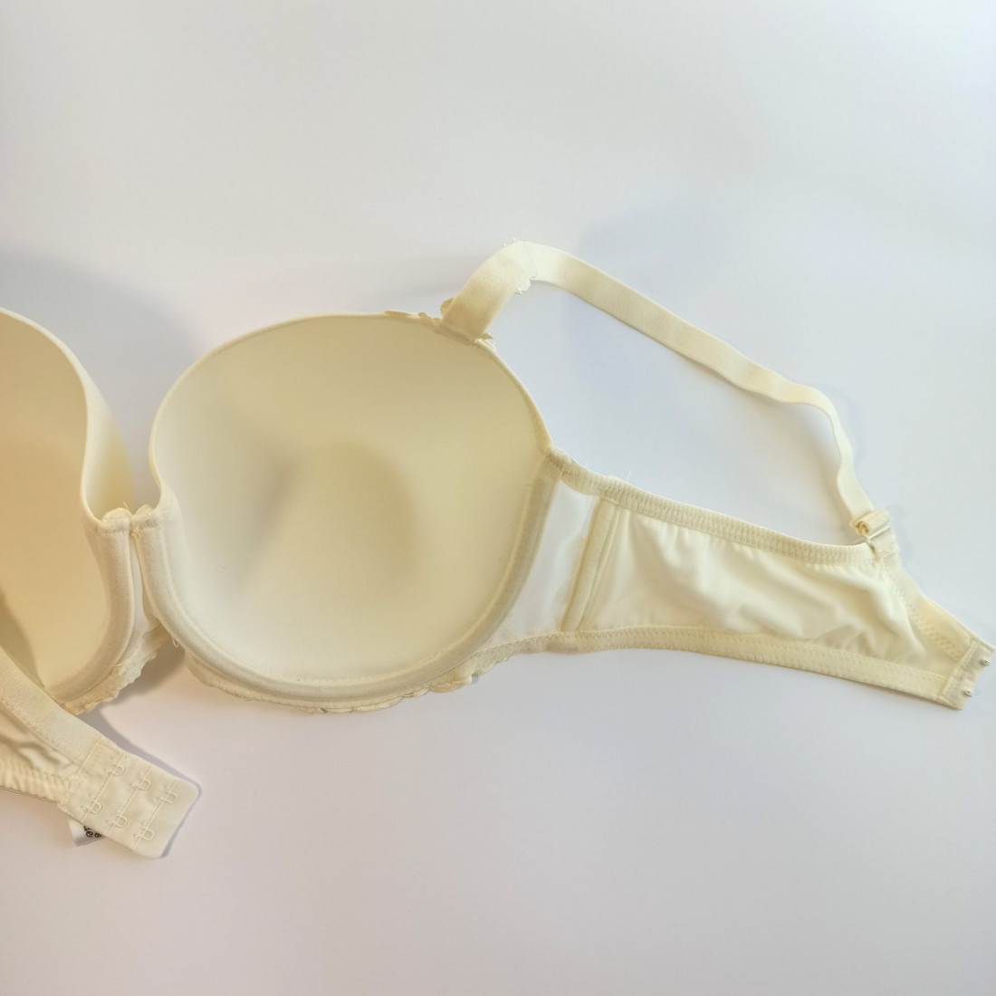 незнімні бретелі регулюються, застібка ззаді, гачки у два рядочки на три позиції, внутрішня сторона чашки котонова.
