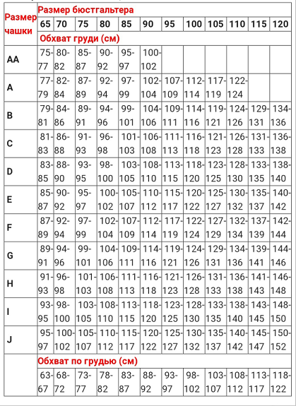 1. Обхват грудей (см) - це розмір чашки (від АA до J)