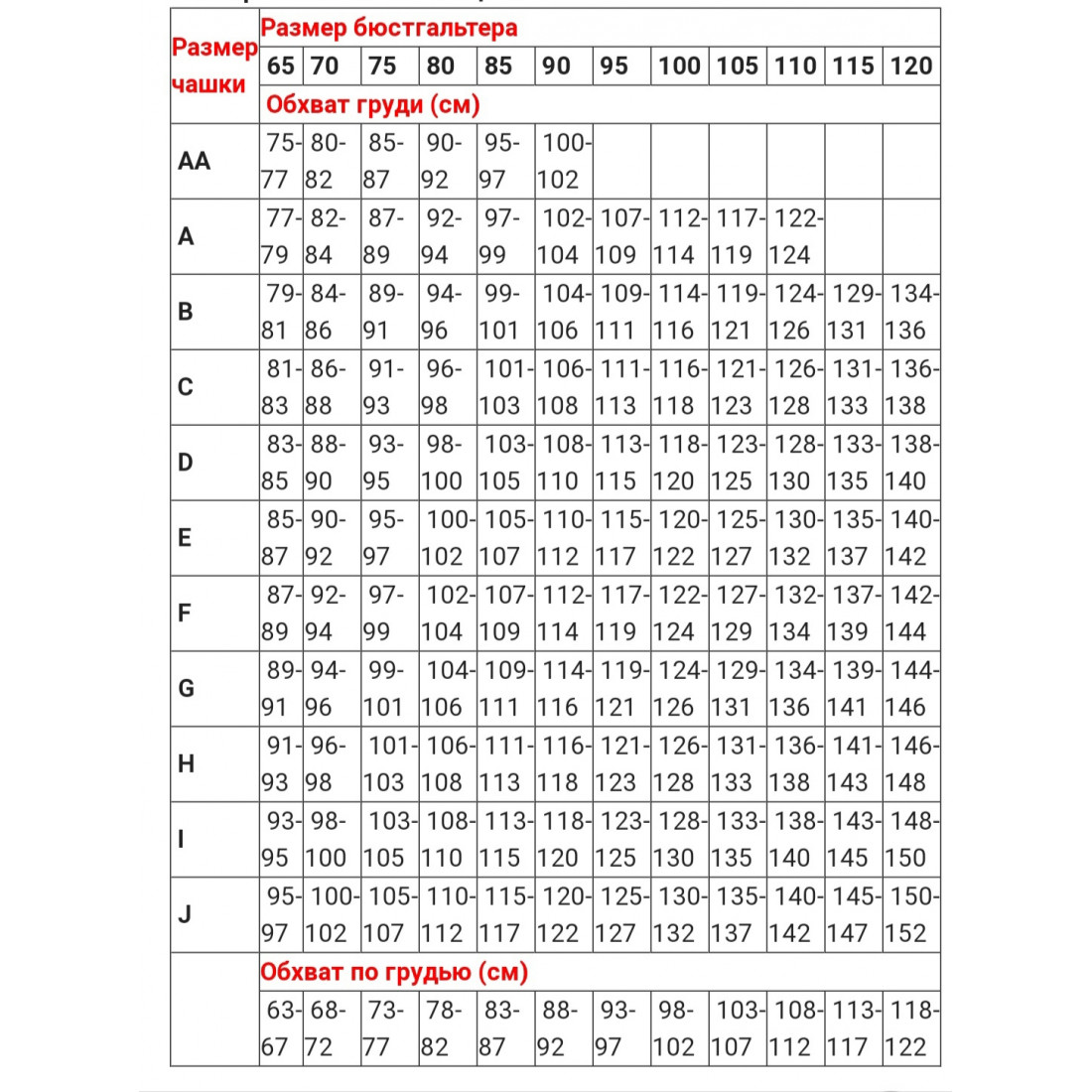 Комплектація трусиками проводиться відповідно до підгрудного об’єму: 70-S, 75-М, 80-L. 85-ХД