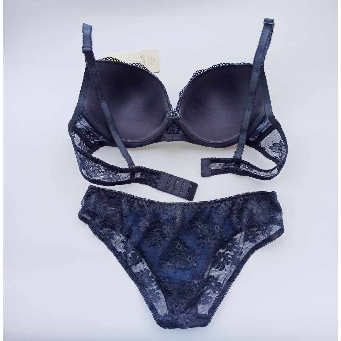 - бюстгальтер формована чашка з пуш-апом на кісточках, перед декорованиймереживом, знімні бретелі, застібка на чотири гачки в один рядок, спинка гладка.