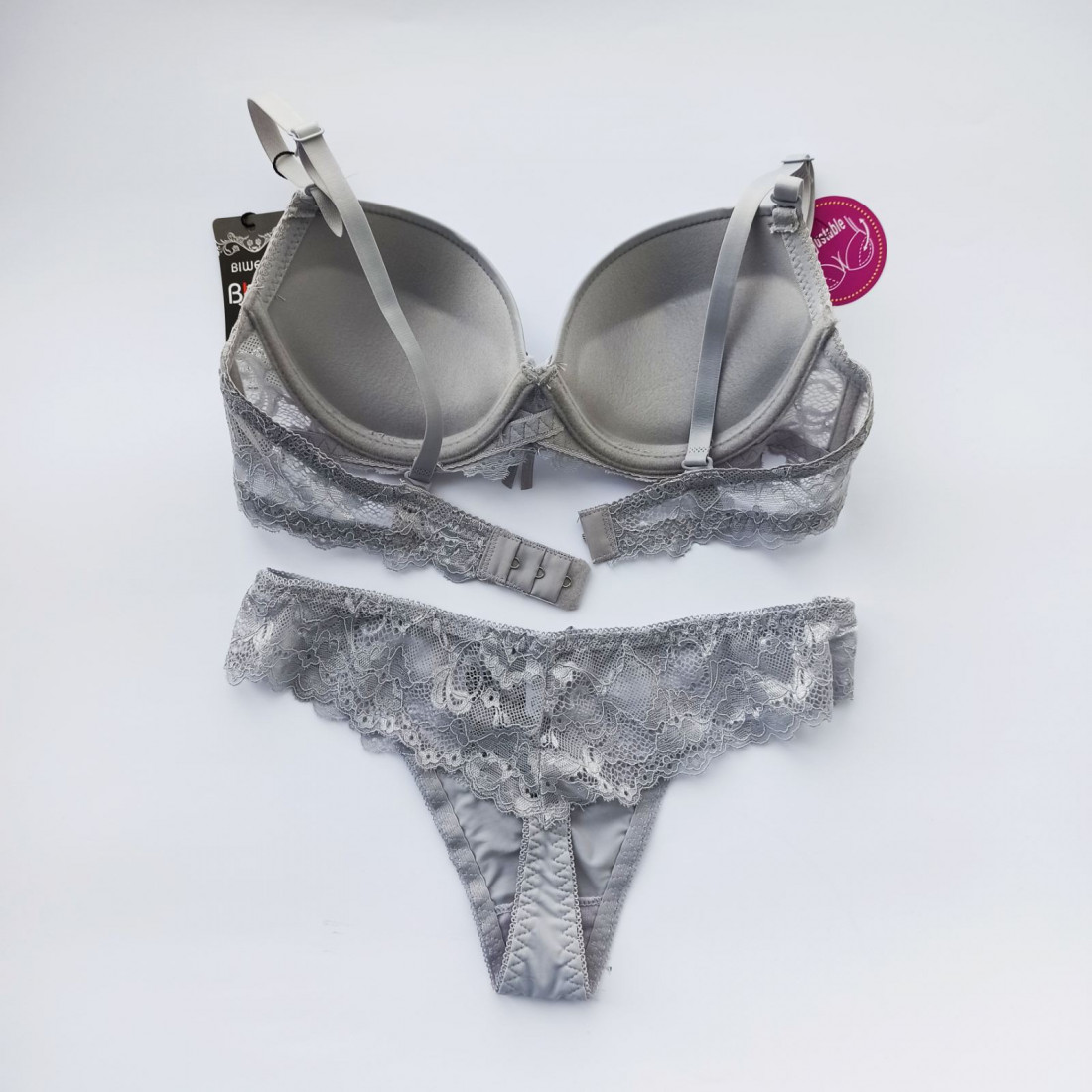 - формований гладкий бюстгальтер з пуш-апом на кісточках делікатно прикрашений мереживом, знімні бретелі,спинка з мережива, застібка на три гачки в одинь ряд, спереду прикрашений бантиком